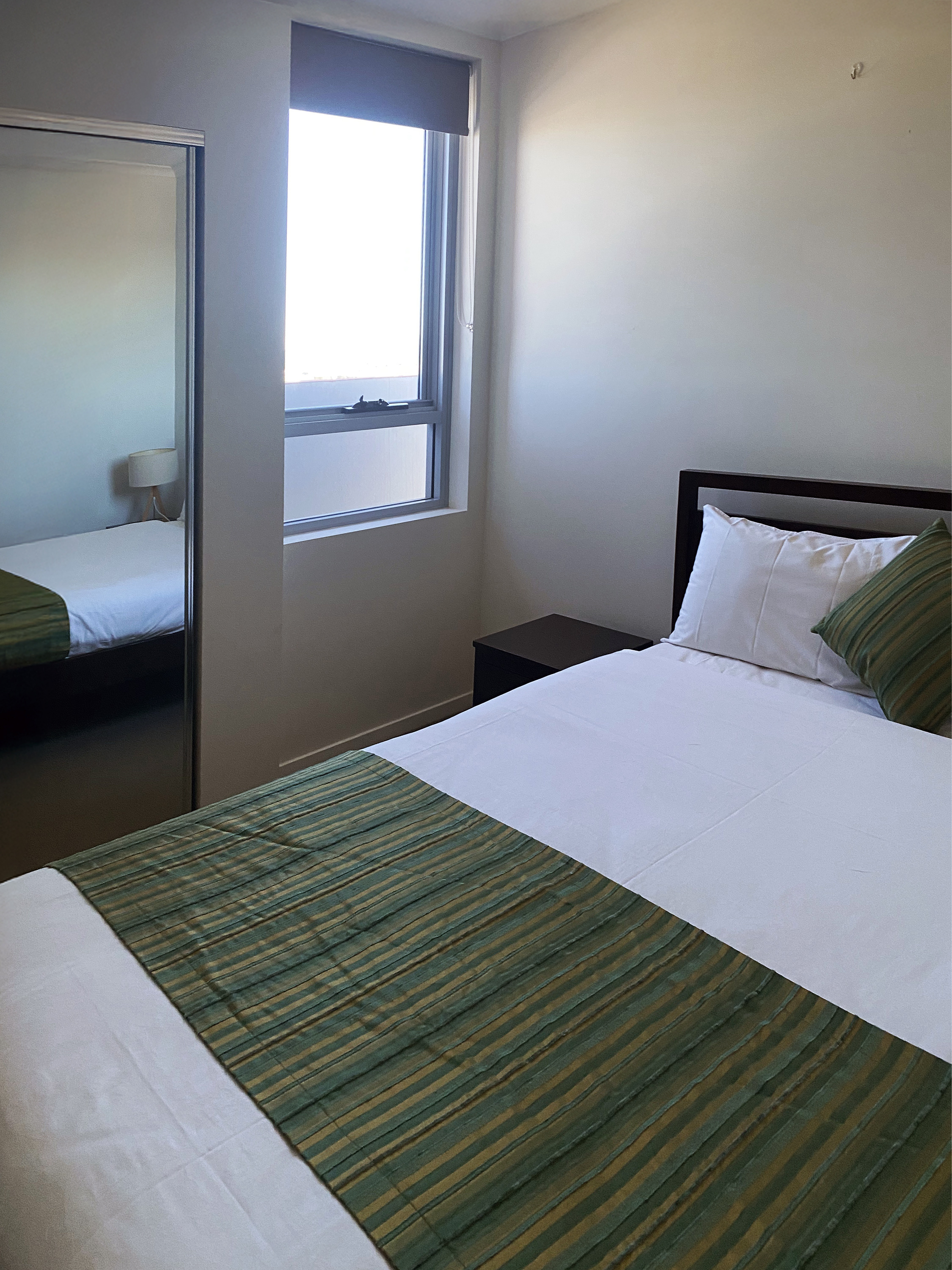 Unit 47- Two Bedroom serviced apartment at Curtis Central Apartments is the perfect place to call home for however long you need. Within the apartment, there is room to move, with a spacious living area with an LCD TV. The apartments also contain two queen sized beds, a fully-equipped kitchen and laundry and a dedicated work area.